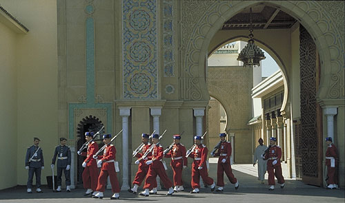 Relève de la garde du Palais Royal à Rabat, Maroc -